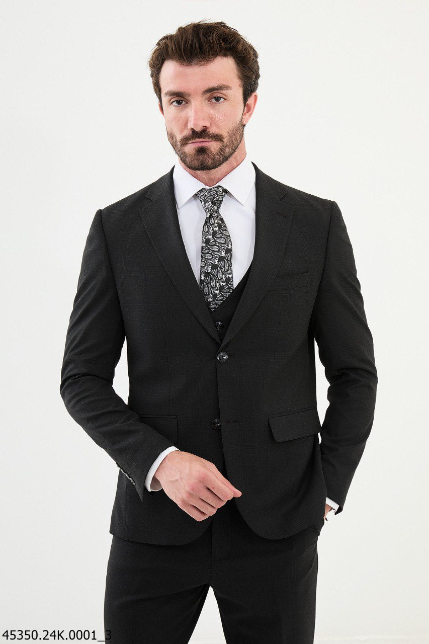 Branded sophistication takes center stage with this timeless black three-piece suit, featuring a luxurious paisley tie for a striking accent. Designed for weddings, formal events, and executive settings, this suit exudes elegance and refinement.