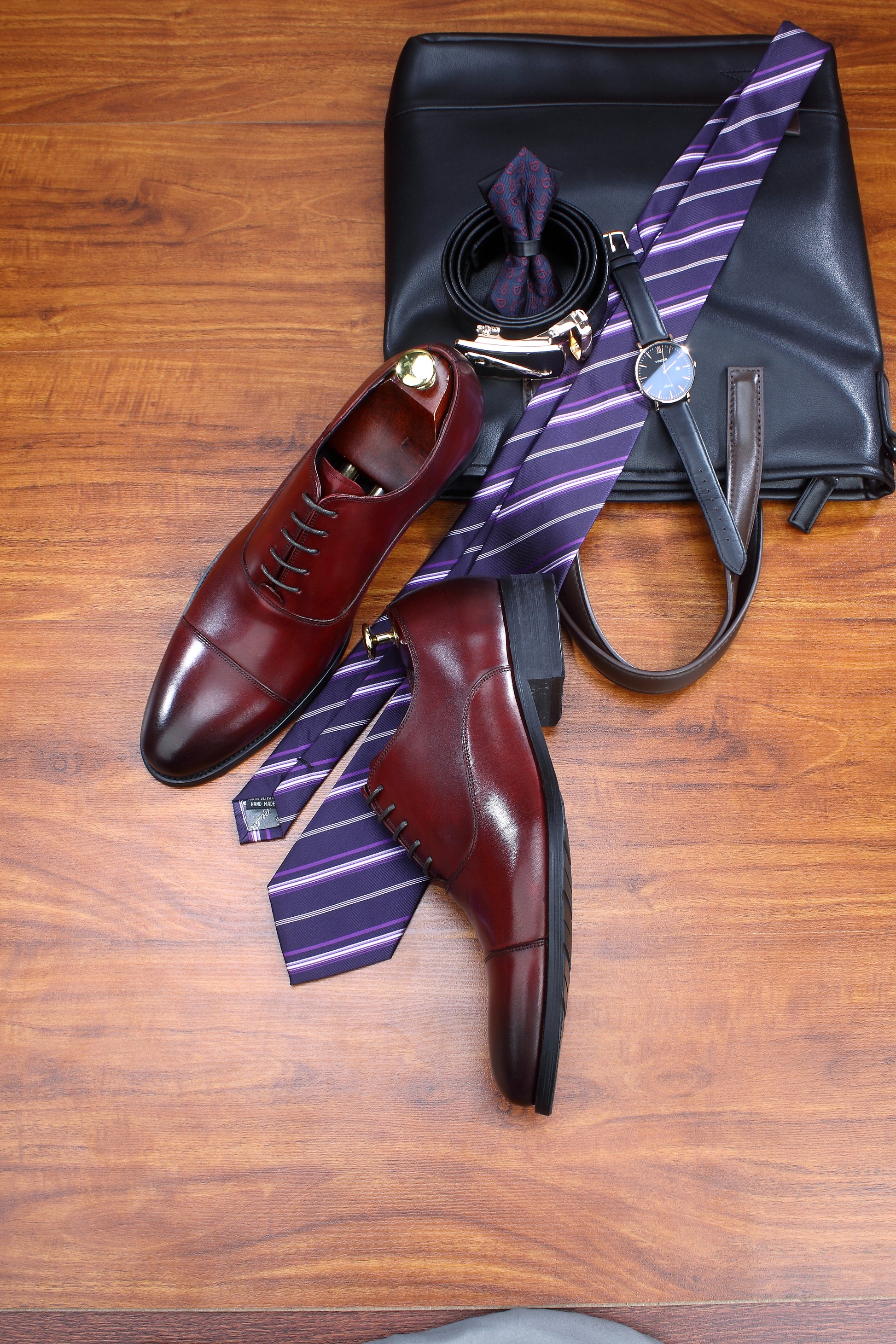 Perfect for formal events or elevating business attire, these handcrafted Oxfords feature a sleek cap-toe design and a rich burgundy hue, offering a unique blend of tradition and modern style.