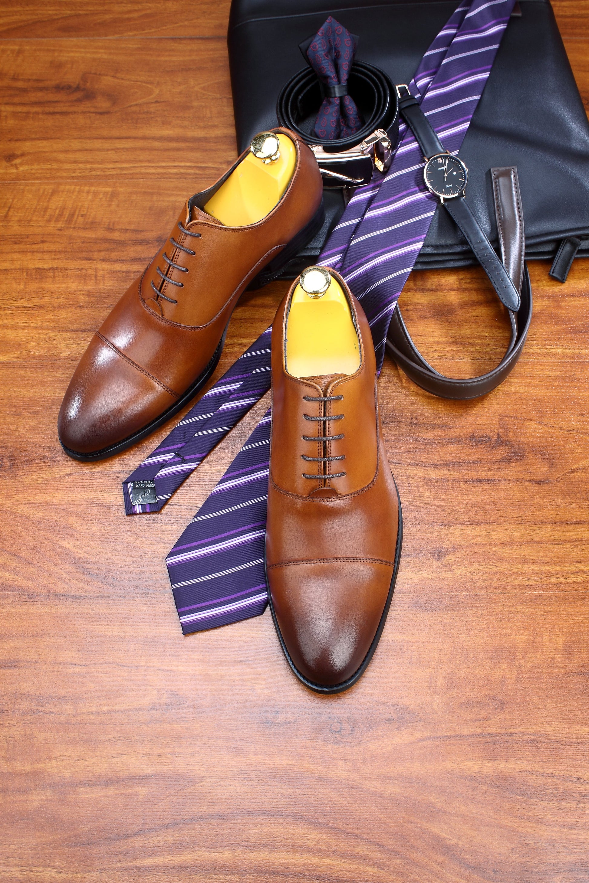 These cap-toe Oxfords feature a rich cognac brown finish that blends effortlessly with both professional and formal outfits, offering a timeless yet modern look.