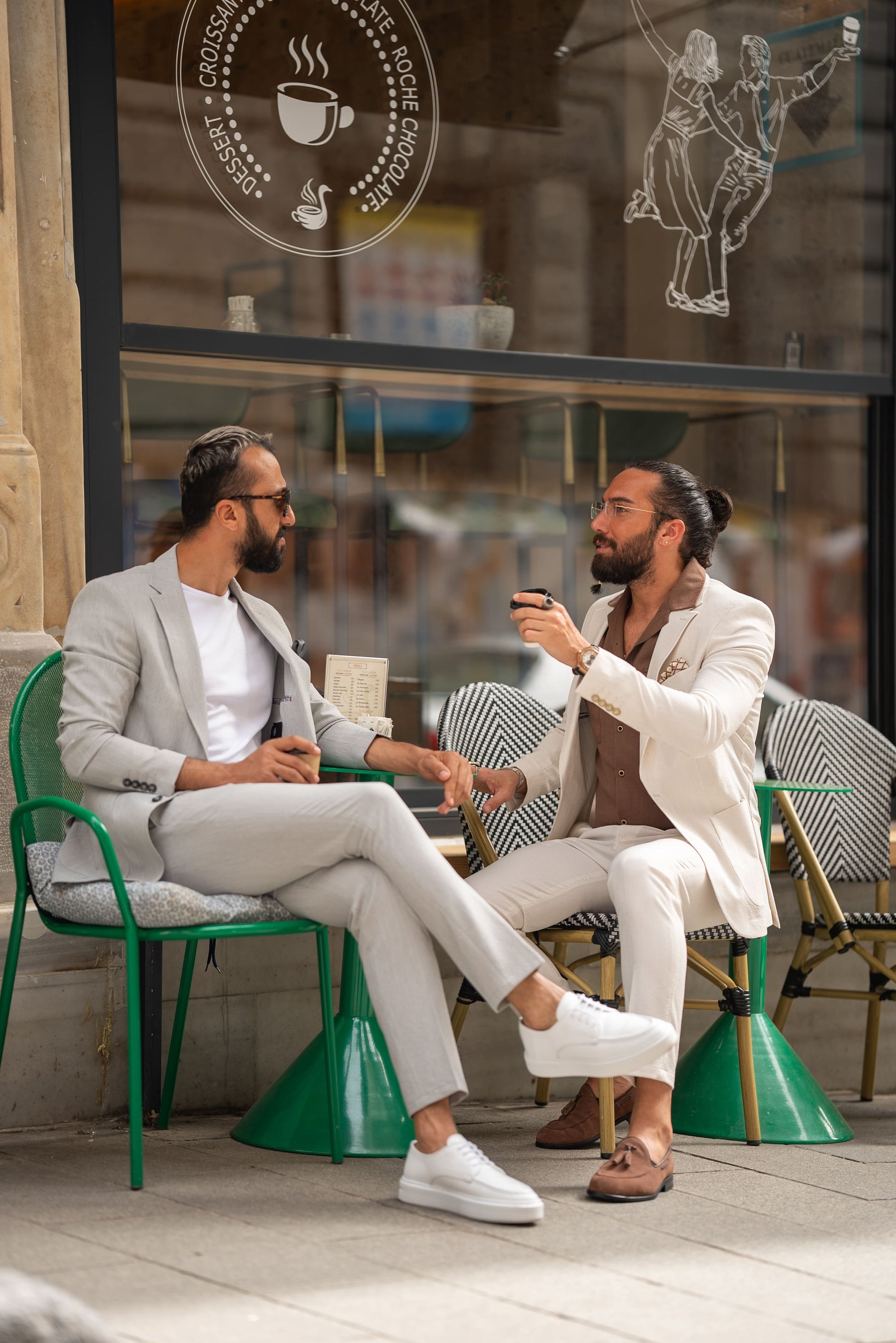 Stay sharp and relaxed with this light gray casual slim fit suit, expertly tailored from a breathable blend of 55% Cotton and 45% Polyester. The lightweight structure and soft texture make it perfect for warm weather, city strolls, or weekend brunches.