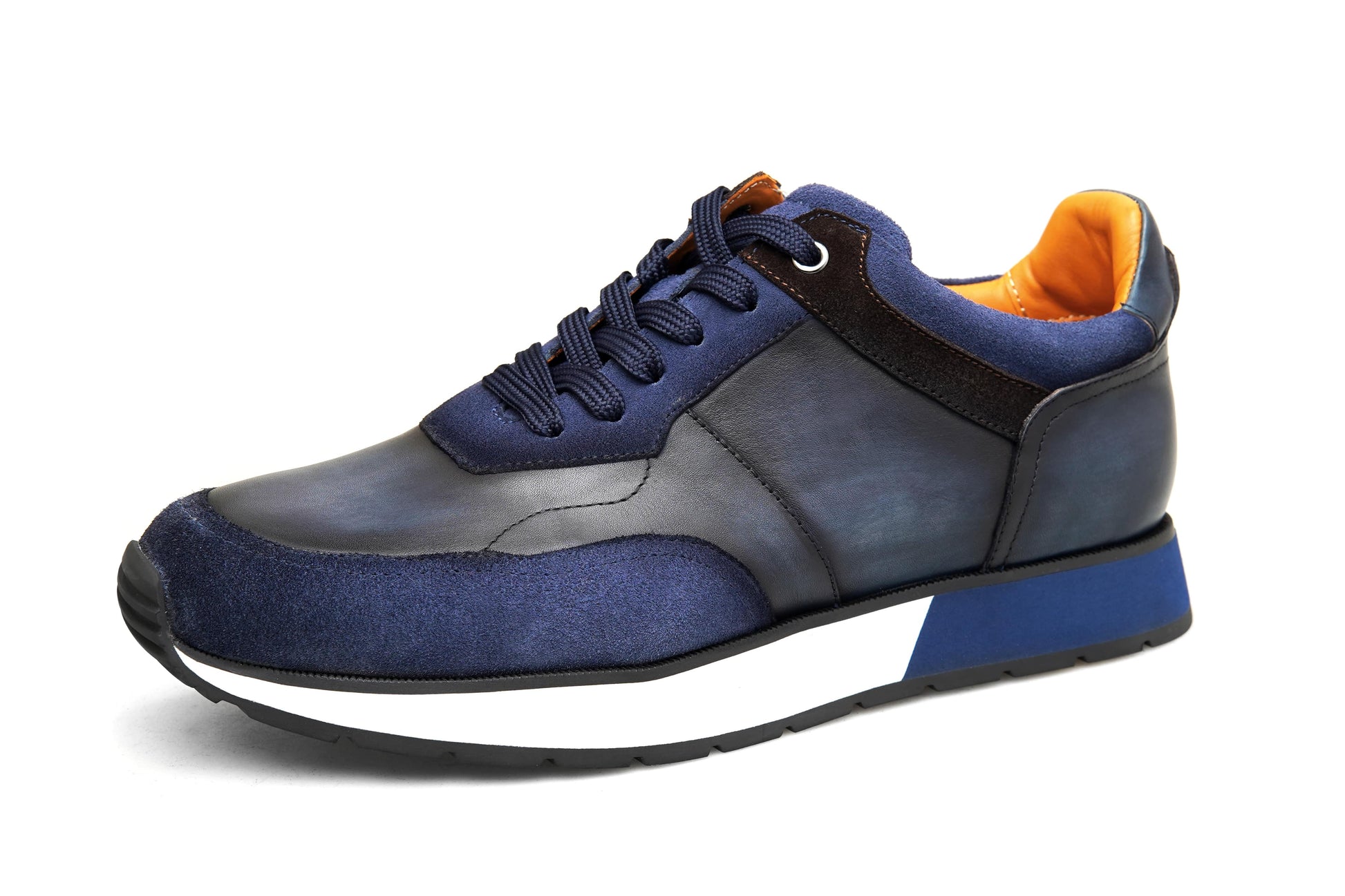 Step into effortless style with these men’s blue leather and suede sneakers. Designed with a mix of premium leather and soft suede, these low-top sneakers combine durability with modern comfort. The cushioned insole and rubber outsole ensure all-day wear, while the rich navy tones make them versatile for casual outfits, weekend wear, and travel. A must-have pair for men who want both sophistication and sporty edge.
