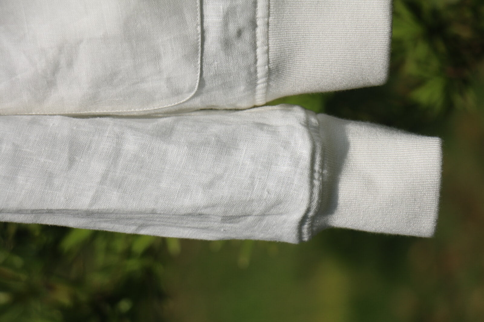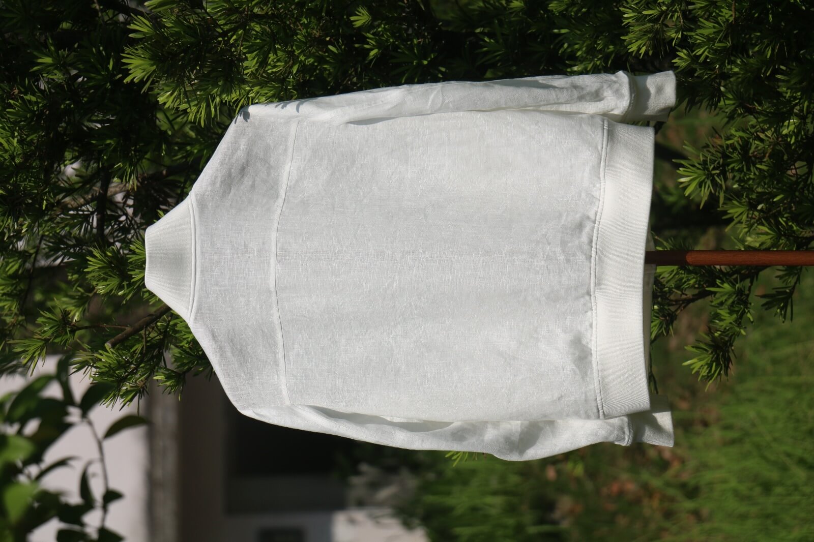 The Men’s White Linen Utility Jacket is the embodiment of relaxed sophistication for warmer days. Crafted from natural Japanese linen, this breathable summer layer blends elevated design with subtle functionality. A unique knitted stand collar and ribbed hem add a touch of athleisure, while maintaining the integrity of classic utility wear.